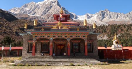 The hike from Namrung to Lho takes you through beautiful forests, traditional Tibetan villages, and amazing views of the Himalayas. As you climb, you'll see incredible sights of snowy mountains like Manaslu, Himalchuli, and Saula Himal. Along the way, you'll visit lovely villages such as Lihi and Sho, which have colorful prayer flags, mani walls, and old chortens that show the area's strong Buddhist culture. At the end of the day, you'll reach Lho, a lovely village under the big Manaslu mountain. There, you can visit the grand Ribung Monastery and enjoy the peaceful mountain surroundings. This part of the journey is a great mix of nature and culture, making it a favorite part of the Manaslu Circuit.